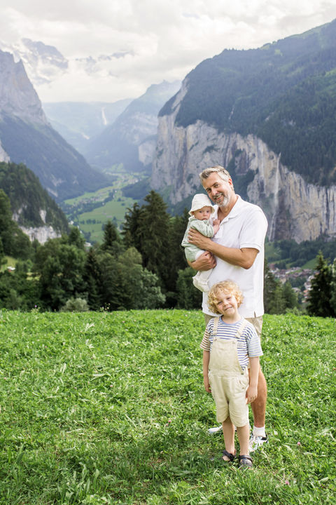 Family photoshoot in Wengen with Lauterbrunnen valley view