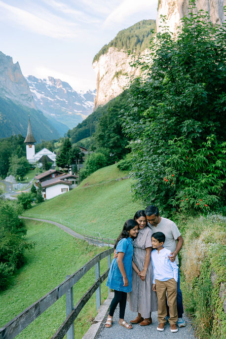 Lauterbrunnen is one of the most iconic places in the Jungfrau region, but it has a distinctly different atmosphere than nearby towns such as Wengen, Mürren, or Grindelwald. It’s a busy valley town and a major stop for day-trippers, so timing matters more here than almost anywhere else nearby. If you want cleaner backgrounds and a calmer experience, I usually recommend starting as early as possible, often 7–8am, before the main crowds arrive. With the right plan, Lauterbrunnen works really well for couples, families, and elopement-style portraits, especially if you’re happy to keep things simple and move efficiently.